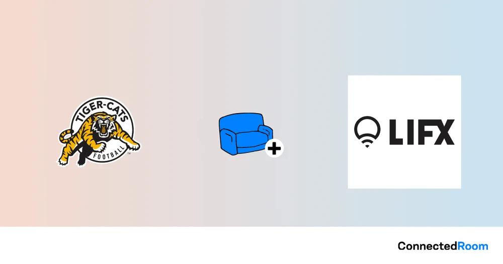 ConnectedRoom macht es einfach, Ihre LIFX Lichter mit der Hamilton Tiger-Cats zu synchronisieren. Es wird Ihre Lichter in Echtzeit blinken lassen, wenn es einen Touchdown gibt, und gleichzeitig die Teamfarben anzeigen.