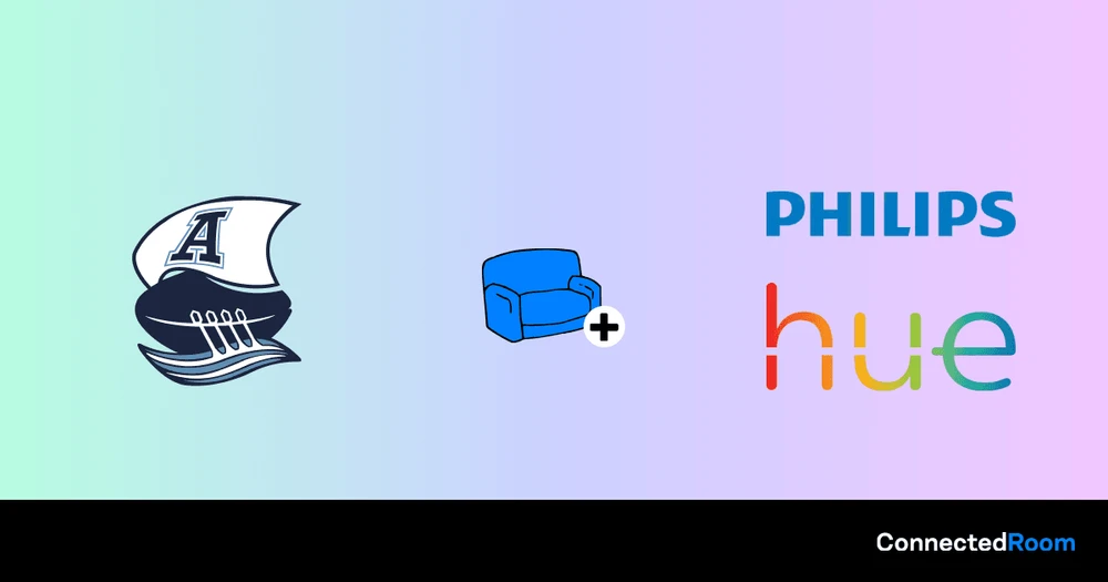ConnectedRoom ermöglicht es Ihnen, Ihre Philips Hue Lichter mit der Toronto Argonauts zu verbinden. Es wird Ihre Lichter in Echtzeit blinken lassen, wenn ein Touchdown erzielt wird, und gleichzeitig die Teamfarben des punktenden Teams anzeigen.