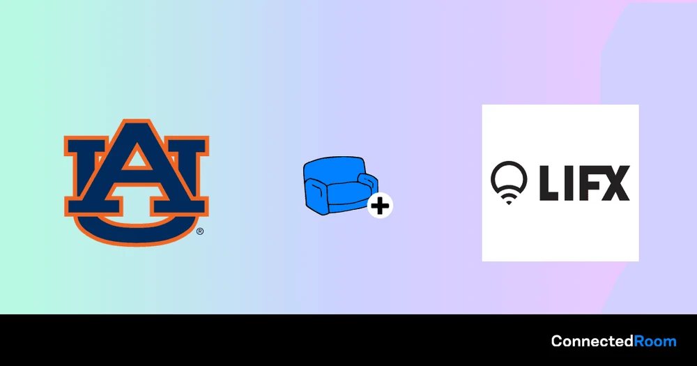 ConnectedRoom macht es einfach, Ihre LIFX Lichter mit der Auburn University zu synchronisieren. Es wird Ihre Lichter in Echtzeit blinken lassen, wenn es einen Touchdown gibt, und gleichzeitig die Teamfarben anzeigen.