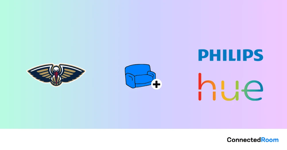 ConnectedRoom macht es einfach, Ihre Philips Hue Lichter mit der New Orleans Pelicans zu synchronisieren. Es wird Ihre Lichter in Echtzeit blinken lassen, wenn es einen Korb gibt, und gleichzeitig die Teamfarben anzeigen.