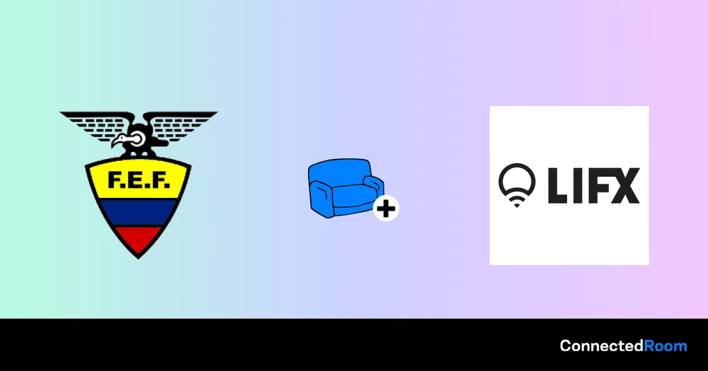 ConnectedRoom ermöglicht es Ihnen, Ihre LIFX Lichter mit der Ecuador bei der FIFA-Weltmeisterschaft zu verbinden. Es wird Ihre Lichter in Echtzeit blinken lassen, wenn ein Tor erzielt wird, und gleichzeitig die Teamfarben des punktenden Teams anzeigen.