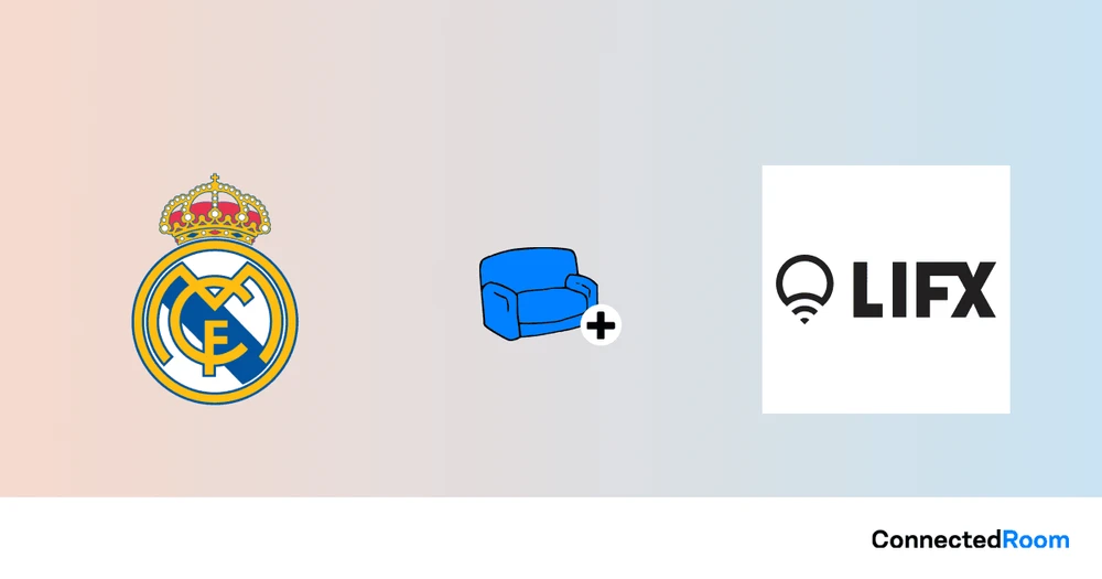 ConnectedRoom macht es einfach, Ihre LIFX Lichter mit der Real Madrid zu synchronisieren. Es wird Ihre Lichter in Echtzeit blinken lassen, wenn es einen Tor gibt, und gleichzeitig die Teamfarben anzeigen.