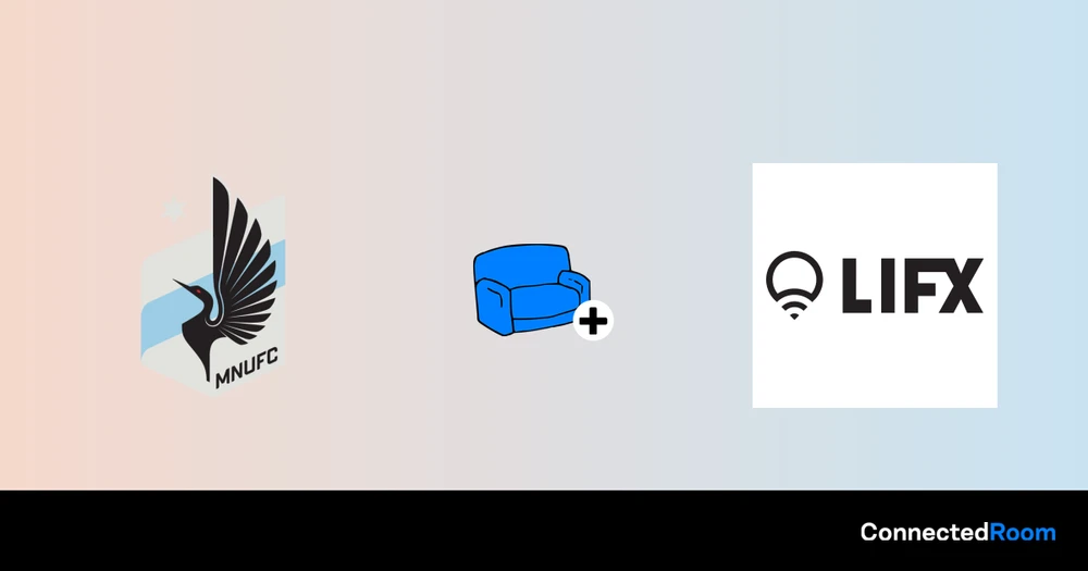ConnectedRoom macht es einfach, Ihre LIFX Lichter mit der Minnesota United FC zu synchronisieren. Es wird Ihre Lichter in Echtzeit blinken lassen, wenn es einen Tor gibt, und gleichzeitig die Teamfarben anzeigen.