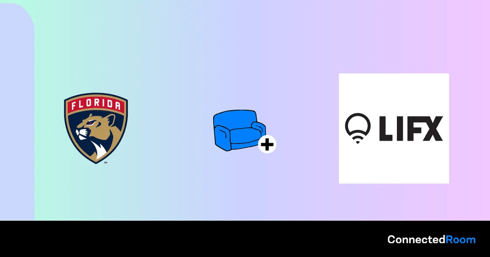 ConnectedRoom macht es einfach, Ihre LIFX Lichter mit der Florida Panthers zu synchronisieren. Es wird Ihre Lichter in Echtzeit blinken lassen, wenn es einen Tor gibt, und gleichzeitig die Teamfarben anzeigen.